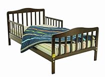 First thing first Dream On Me Classic Toddler Bed - Espresso First time mother of a toddler..By Samantha E.Ordered product when out of stock, received it within the same week of placing the order. AWESOME! My son loves the bed completely. It's super cute and sits low to the ground- which I wanted so if he falls out that it wouldn't be a big fall. Putting the bed together was fairly easily, I do recommend having two people, as the mattress boards in between the frame need to fit into the pre-drilled holes and it's helpful to have someone hold them in place while bed is being placed together.Positives/Negatives:-Low to the ground-Came w/dents in frame in areas not linked w/damage in transit-Easy for child to get in and out of-Built on frame guards should be a little taller-Fairly easy to put together, recommend extra helping hand though-Good price (in my opinion, I only paid 19.95 total w/coupon)-Arrived promptly-Simple-Overall quality good-Mattress boards weren't painted to match bed-Mattress boards had some cracks-Cherry finish not unified in some areas of the bed, but I liked itSee all 35 customer reviews... »»