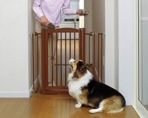 Oh Gee Richell Wood One-Touch Pet Gate, Autumn Matte Finish Very nice, but no match for a determined puppyBy Ron Michael ZettlemoyerOverall this is a very nice gate. It looks great, is well built, and is easy to install. And while I like the look of the wood portion of the gate, it unfortunately is a bad idea for puppies or dogs of any age that like to chew or are determined to get out. Within three weeks my 4 month old Beagle had chewed and broke his way through it. So I had to replace it with a gate made solely of metal.21 of 21 people found the following review helpful. »»